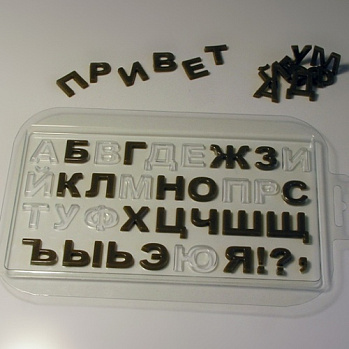Пластиковая форма для создания шоколадных букв.